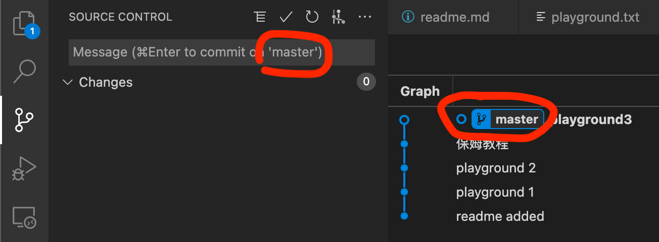4 checkout branch double click the branch name, it shows the branch name in the source control. Otherwise, you will loss the changes, more information can be found at 'detached head'.